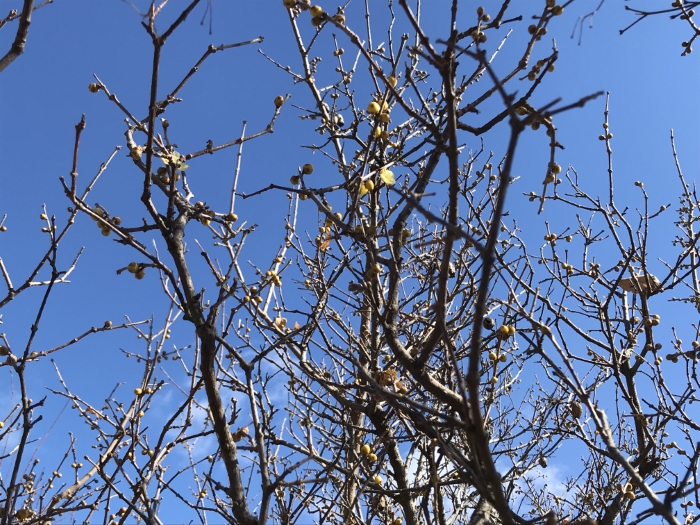 コスモス園のロウバイもちらほら花が咲き出して、芳しい香りをあたりに漂わせています。
